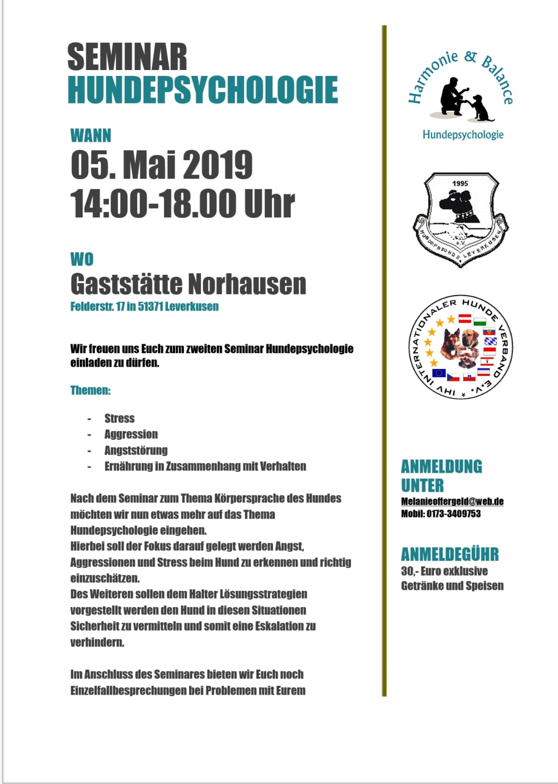 Im Anschluss des Seminares bieten wir Ihnen/Euch noch Einzelfallbesprechungen bei Problemen mit Ihrem/Eurem Hund an.